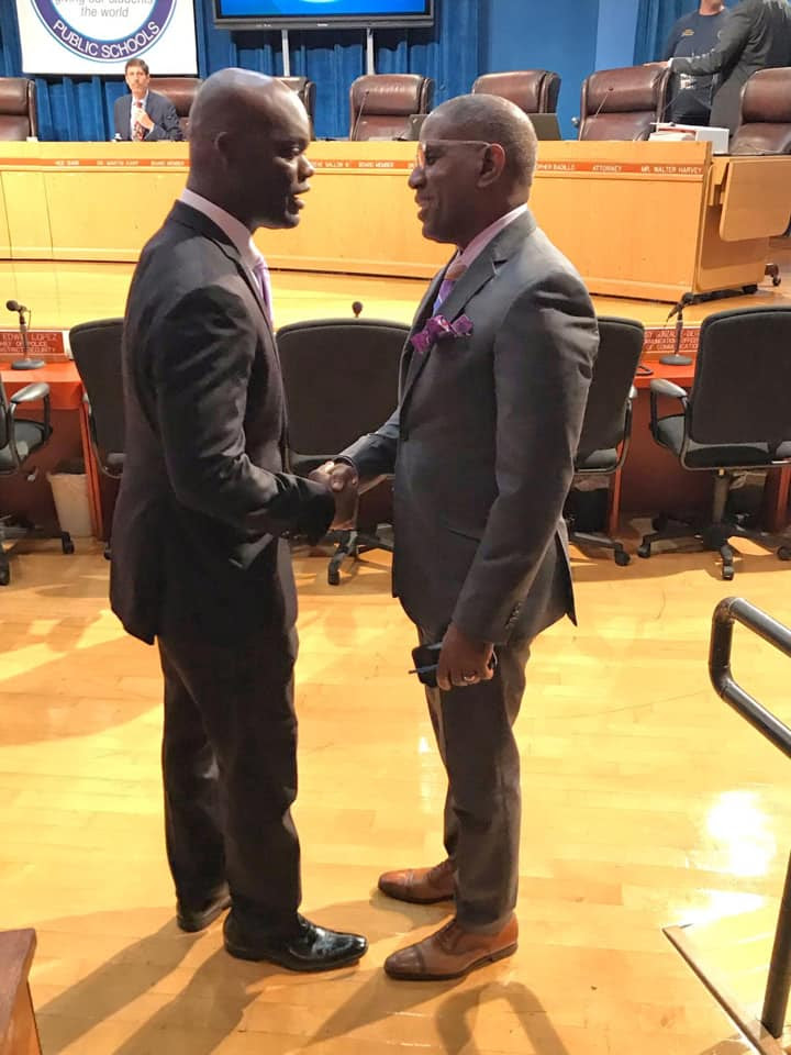 Dr. Gallon had a great morning at the School Board Meeting on June 19th. He had the opportunity to speak with a friend, brother, and fellow community advocate, State Representative Kionne McGhee.