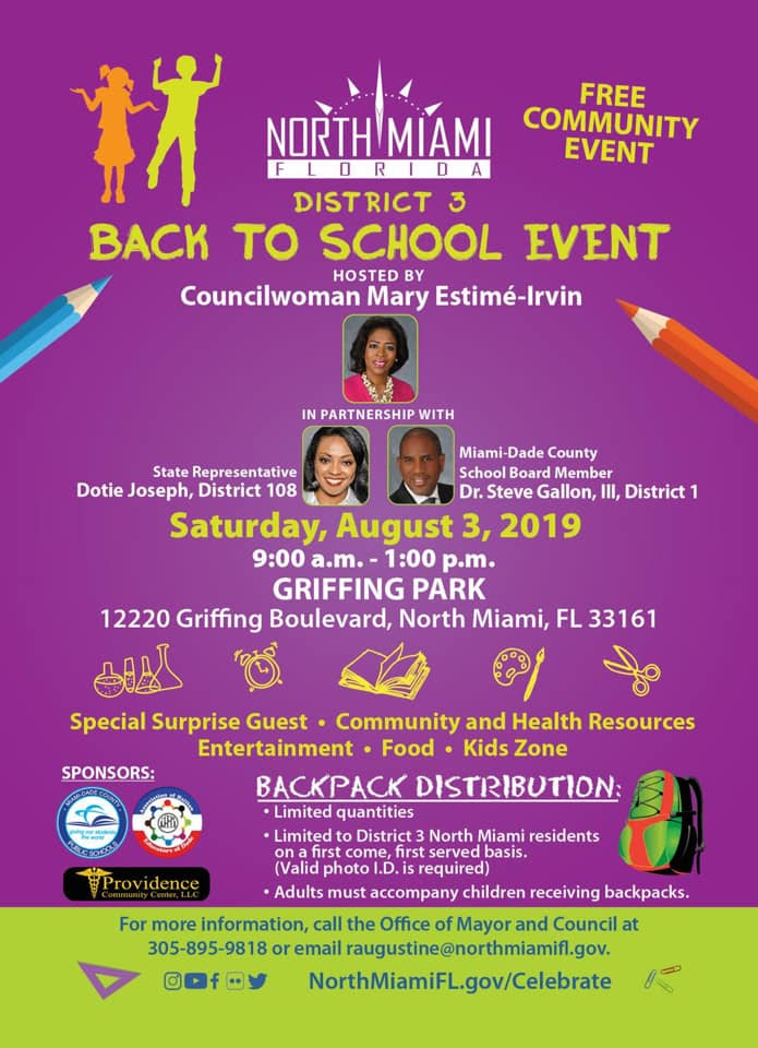 North Miami District 3 Back to School Event & Book Bag Giveaway